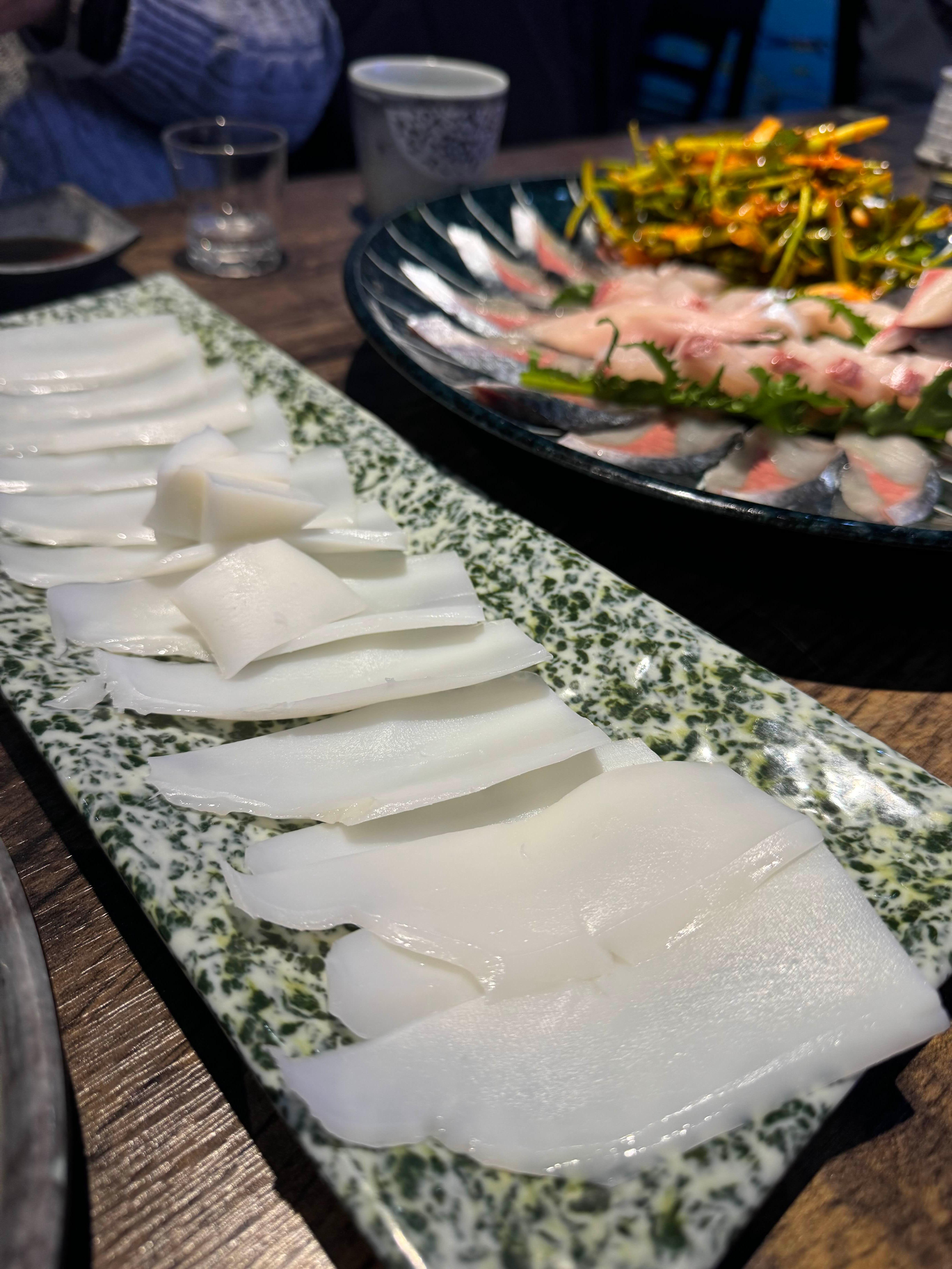 제가 또 갑오징어랑 한치 사랑꾼이거든요. 보이면 무조건 먹어줘야 해요. 보통 때라면, 탕을 하나 더 시켜서 먹었을 텐데 인원이 적기도 하고 2차를 갈 예정이었던 터라 탕은 참고 숙회로 단백질 보충이나 하자~하고 시켰어요.